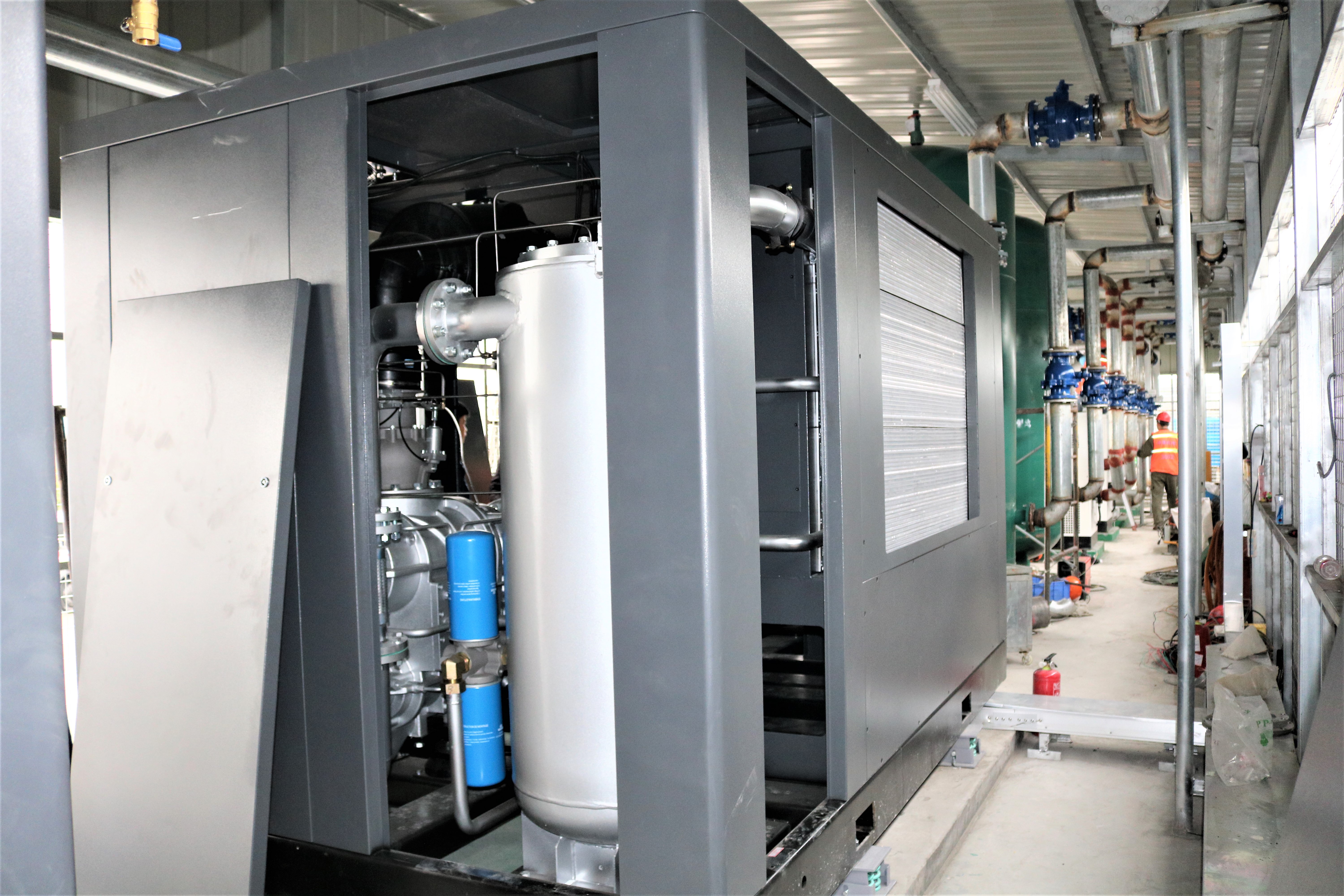 现有的空气压缩机处理系统,可以做到生产型供应的使用要求,但是却是对环境,噪音也是相当的大,每天对周围工厂也有所影响,日常耗电量也挺大,空压机后处理的水、油效果也是频频出现问题,另外由于公司的生产业务量每年增加,所以需要增加设备,并且能够帮助他们改善现状。经过麦恩斯压缩机公司的专业工程师一行一同来到该厂考察了之后,决定对该空压机组进行节能改造,目前从运行各方面的数据来看,反应还是相当不错的,声音也是很小,而且比之前的机器耗电量更加节能,后处理的设备也能够处理好水、油的用气端问题。
