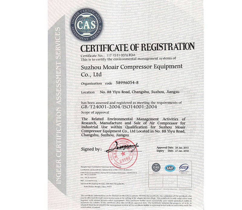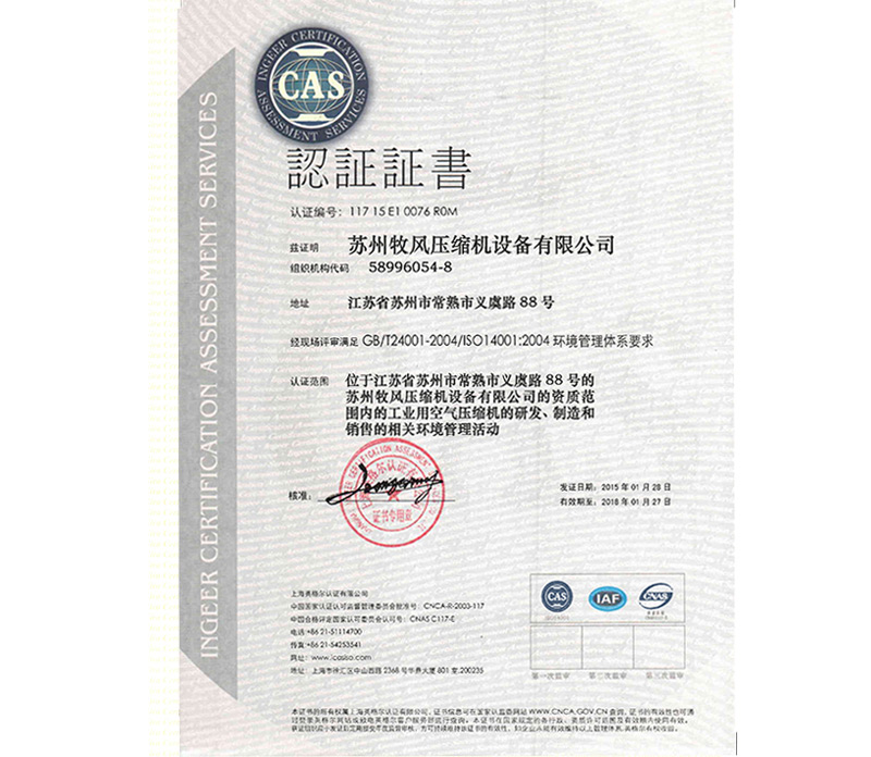 苏州牧风14001证书