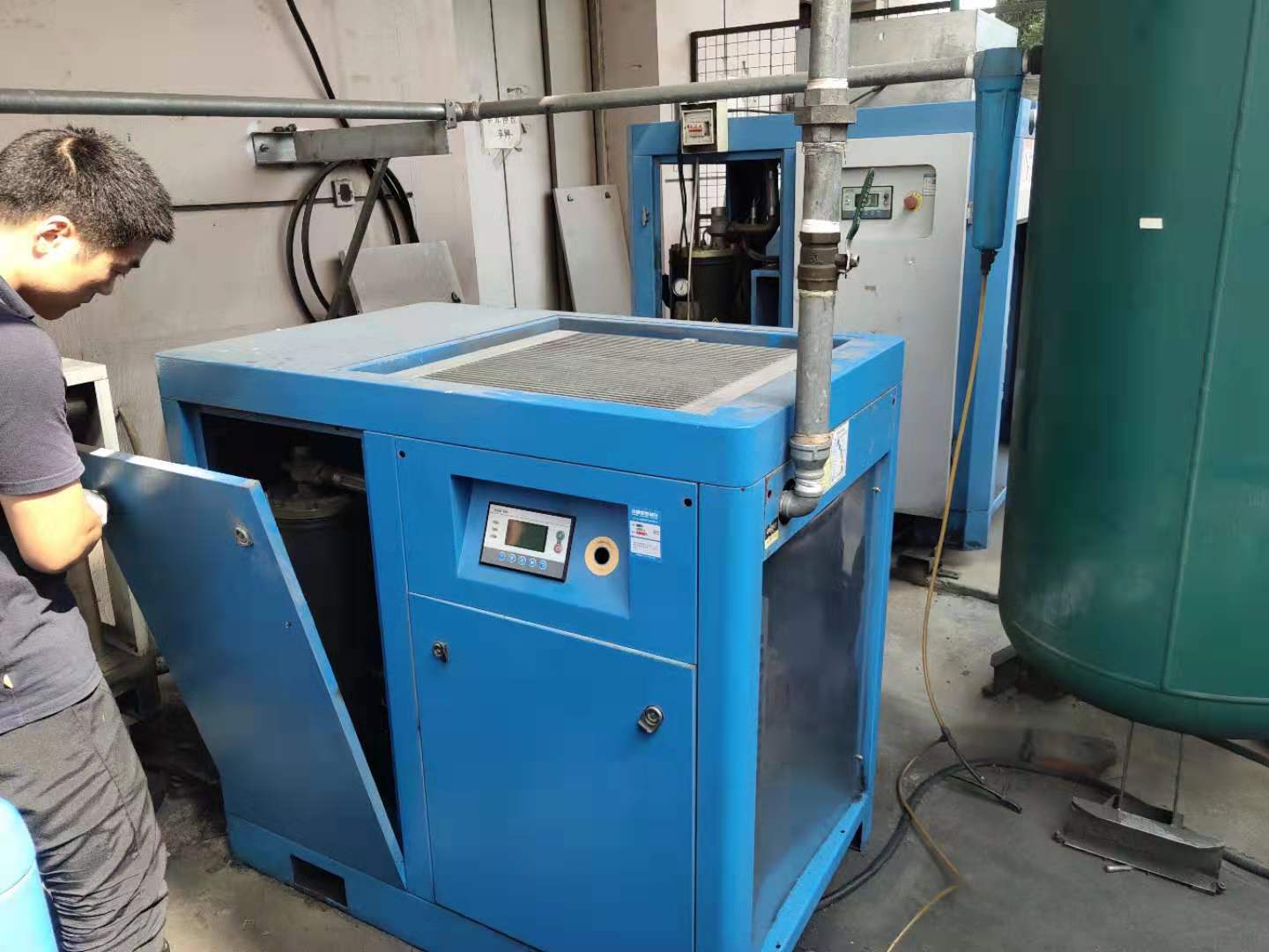 故障表现:低于加载压力→空压机开始加载并排气→压力上升迅速→几秒到十几秒即达到设定的卸载压力→空压机卸载停止排气→压力下降迅速→几秒到十几秒压力下降到设定的加载压力→空压机又开始加载排气如此周而复